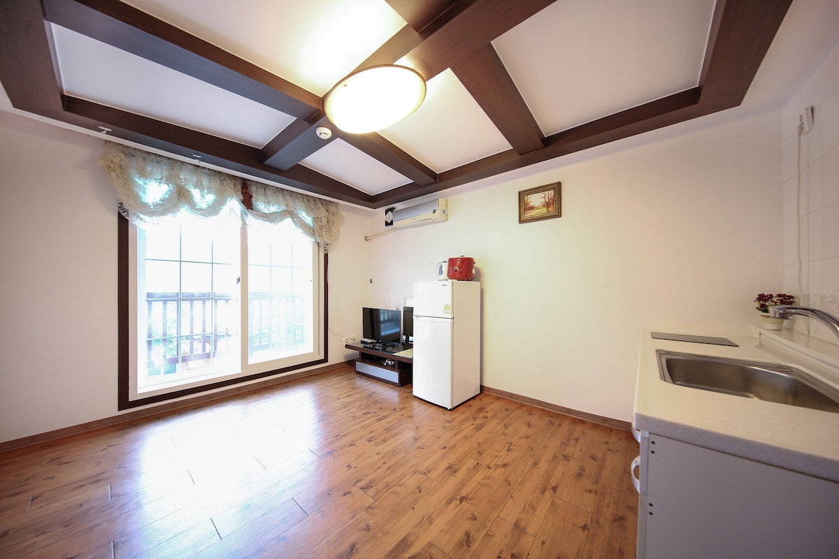 Il se compose de 2 chambres, d'une salle de bain, d'une cuisine et d'un salon de 55m2. Le barbecue peut être apprécié seul ou en équipe de 3 personnes sur une belle terrasse de 59m2 avec vue sur la mer devant le mont Manisan. -Utilisation payante Le barbecue est également possible à l'intérieur, qui est un espace café, pendant la saison des pluies ou la météo, mais l'hôte et les autres clients qui utilisent l'hébergement coordonnent l'heure et limitent le temps d'utilisation du barbecue à environ 2 heures (cependant, il n'y a pas de limite de temps lors de l'utilisation du barbecue extérieur) 3 dépanneurs dans un rayon de 500 mètres (GS-100 mètres/CU-250 mètres/Seven Eleven-500 mètres) Il y a un grand parking pour 20 voitures, y compris les voitures de grande taille.
