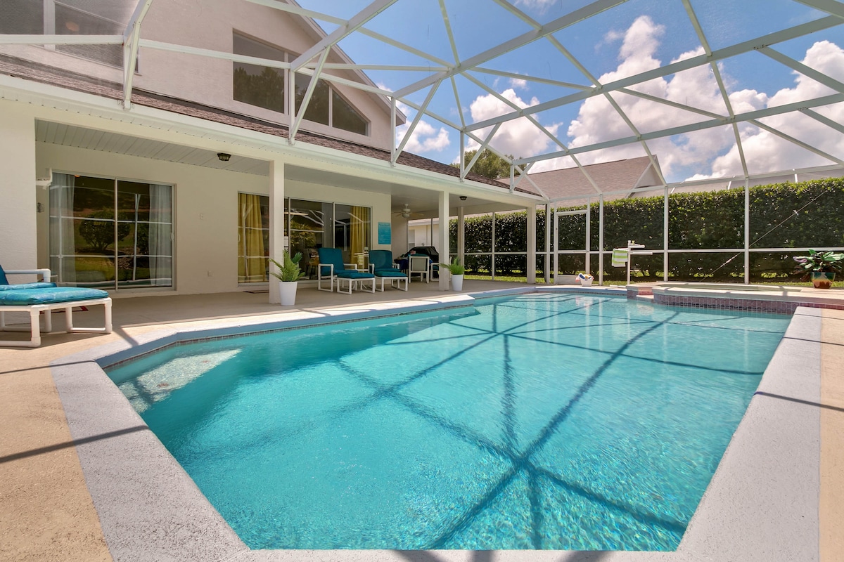 Maison de luxe de 4 chambres située dans une communauté calme et fermée à environ 15 miles de Disney World. Le temps de trajet jusqu'à Disney dépendra de la circulation, mais il est généralement compris entre 30 et 40 minutes. Entièrement meublée avec 2 suites parentales avec lit King Size, une chambre avec lit Queen Size et une chambre avec 2 lits jumeaux. 3 salles de bain complètes. 5 téléviseurs haute définition, Wi-Fi haut débit, appels téléphoniques interurbains gratuits vers les États-Unis, le Canada et le Royaume-Uni. Grande piscine et spa. Grande salle de jeux avec de nombreux jeux et activités pour les enfants de tous âges.