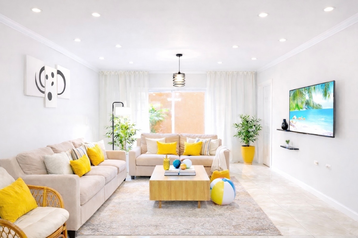 Toc toc ! Entrez ! Mettez-vous en valeur dans cette maison au décor élégant où la modernité rencontre le charme, le design et la décoration avec votre confort à l'esprit. Meubles uniques, appareils de cuisine haut de gamme, chambres confortables avec climatisation et téléviseurs intelligents, salles de bains attenantes équipées de toutes vos commodités de tous les jours. Emplacement privilégié dans un quartier haut de gamme sûr. Accès GRATUIT à notre club de plage bien entretenu, à 5 min en voiture. Situé à 10-15 minutes de l'aéroport, du Riu, du Holiday Inn, du Hip Strip, de la vie nocturne, des restaurants et des centres commerciaux.
