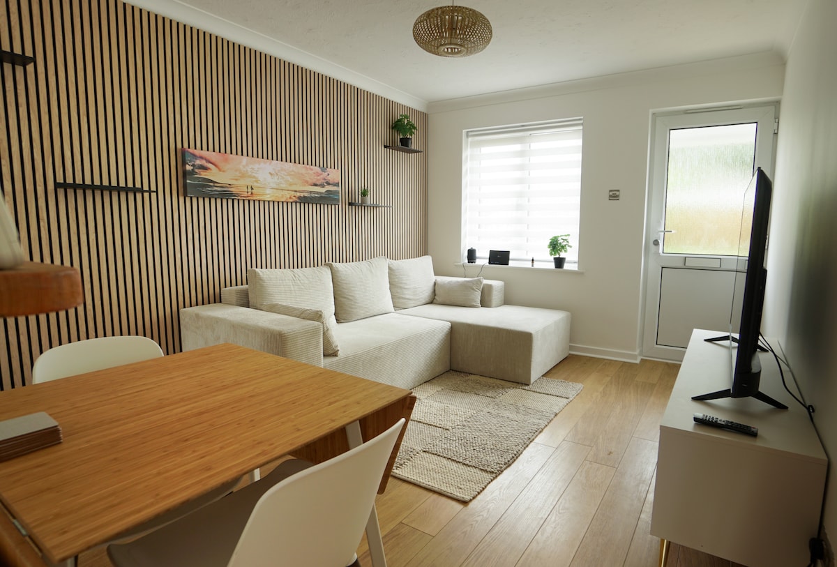Nous habitons dans un endroit calme situé à la périphérie de Barnstaple, niché dans un quartier résidentiel tranquille. Les équipements les plus proches sont à environ 15 minutes à pied. « La suite Tarka »est composée de 3 chambres séparées plus une salle de jardin couverte avec des points électriques. Il y a un lit king size, un canapé 2 places, un petit coin repas et un petit coin cuisine bien équipé qui comprend un réfrigérateur standard, un frigo à deux tiroirs ninja et une plaque de cuisson simple. La vaisselle, les poêles et les couverts sont fournis. Utilisation du jacuzzi en supplément.