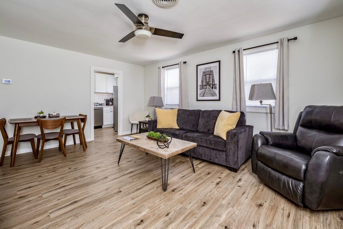 Votre famille sera proche de tout lorsque vous séjournerez à Aire Leclaire ! À quelques minutes à pied du centre-ville et à 2 pâtés de maisons d'American Pickers. Cette maison moderne de 2 chambres et 1 salle de bain se trouve à un pâté de maisons du parcours du défilé du Tugfest. Grange transformée en ferme dans les années 1940, cette maison a été entièrement rénovée avec le charme de la ferme moderne qu'elle a aujourd'hui. En ville pour une journée ou plusieurs, profitez des équipements extérieurs, d'une terrasse éclairée, d'un canapé extérieur et d'une table. À l'intérieur, un foyer DEL moderne mélangé à une beauté rustique.