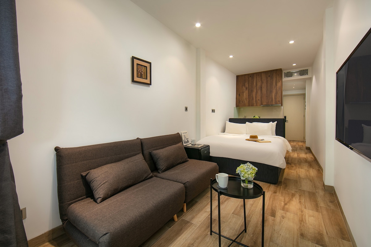 Situé au cœur de la vieille ville, où se croisent les valeurs culturelles, historiques et traditionnelles, l'appartement offre un espace de vie moderne tout en conservant sa sophistication. Avec un espace spacieux, un balcon rempli de lumière naturelle, l'appartement est non seulement ouvert mais offre également de la détente. Le design est minimal et luxueux, l'emplacement est super pratique, l'appartement est le choix idéal pour 2 personnes. Venez séjourner et vivre une vie confortable, immergez-vous dans la vie culturelle unique de Hanoï.