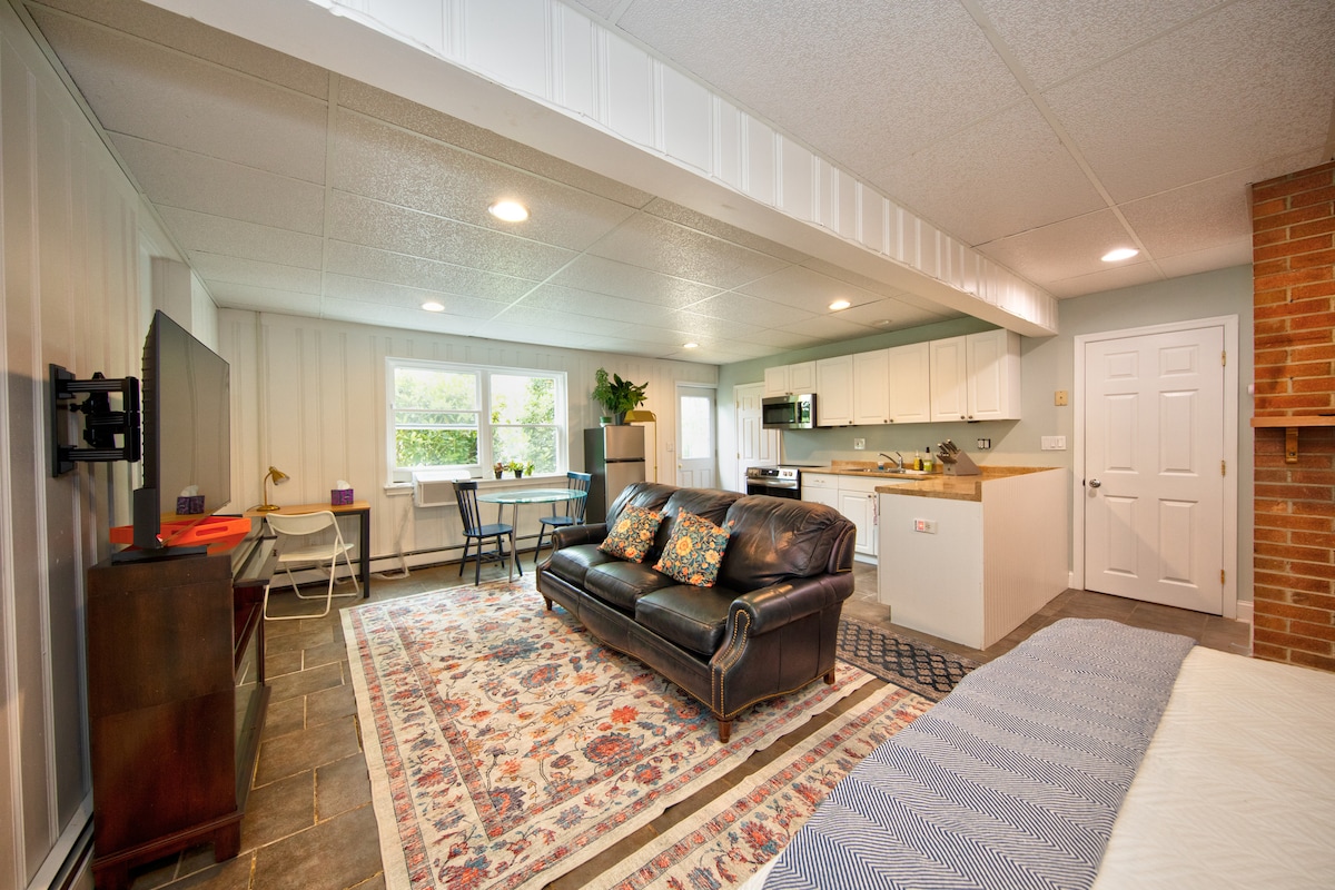 Bienvenue dans notre appartement créatif confortable et efficace au sous-sol. Cette maison d'hôtes a été récemment rénovée avec une nouvelle couche de peinture, de nouveaux meubles et de nouveaux draps. Il est bien éclairé et dispose de sa propre entrée privée. Il y a un petit patio juste devant la porte où vous pourrez profiter d'une tasse de café ou de thé le matin. Nous vous souhaitons un excellent séjour !
