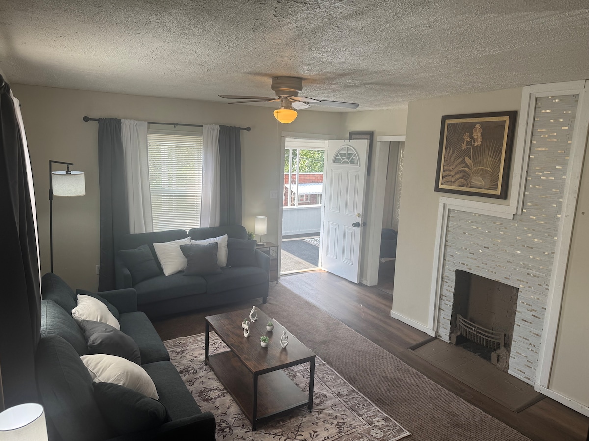 Détendez-vous en famille dans ce logement paisible. Beaucoup de stationnement et un porche avant spacieux…. L'arrière de la maison dispose d'une terrasse couverte avec foyer dans la cour arrière. La rivière West Fork est accessible à pied. L'intérieur dispose d'une salle familiale avec foyer. House se trouve à 5-10 minutes du centre du FBI, des installations gouvernementales et de l'hôpital.