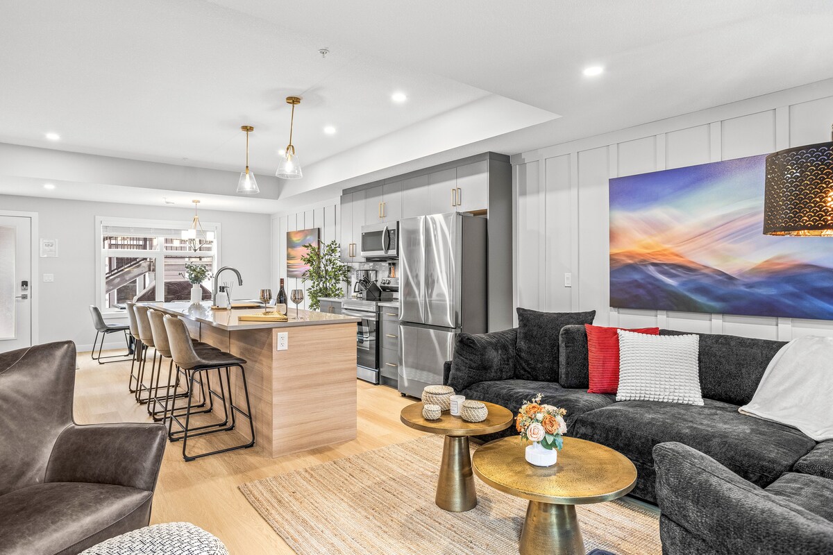 Cette suite nouvellement construite au dernier étage offre une expérience de vie exceptionnelle avec une vue imprenable sur la montagne. Profitez d'équipements haut de gamme comme les jacuzzis sur le toit ou le sauna humide sur mesure. Organisez un barbecue et détendez-vous sur vos deux vastes balcons privés. À la tombée de la nuit, rassemblez-vous autour de la table de feu et émerveillez-vous devant le ciel étoilé. À quelques kilomètres de Banff, cette propriété allie luxe et commodité pour une escapade en montagne idéale.