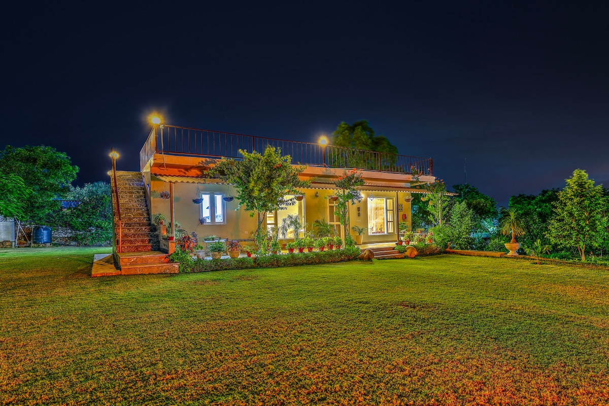 Escape to Neemrana’s Top rated Glass House Farm! Set against the serene backdrop of the Aravalli Hills, this best-rated retreat offers an exceptional Airbnb experience. Perfect for families, small corporate groups, and pet-friendly, making it an idyllic getaway. Just a short drive from Delhi/NCR, this stunning glass house promises a rejuvenating escape, allowing you to unwind in nature’s embrace while enjoying premium amenities. Discover a peaceful retreat designed to refresh yourself.