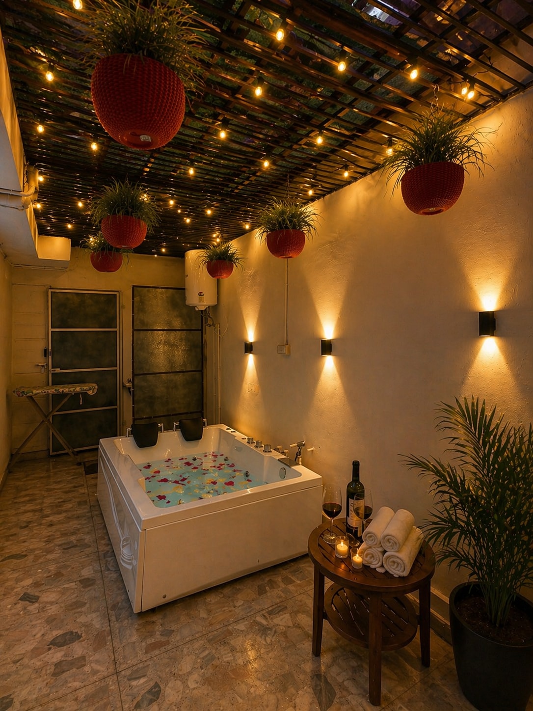 Dolce Den : un séjour artistique de luxe à Jaipur Grand patio : parfait pour le café du matin ou les soirées étoilées. Suite de divertissement : projecteur ultramoderne et table de billard élégante pour un plaisir ultime. Chambres opulentes : • Retraite lunaire : dérive sous des œuvres d'art au clair de lune et des fresques sereines. • Suite Flamingo : un luxe vibrant inspiré des flammes Cuisine ouverte gastronomique et bar : un espace chic pour des créations culinaires et des sirots élégants Dolce Den allie sérénité et opulence pour offrir une expérience inoubliable.