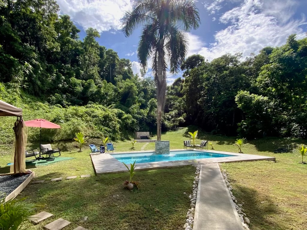 Maison de luxe avec piscine privée chauffée dans les montagnes de Porto Rico. La maison est entièrement équipée avec un barbecue extérieur.
