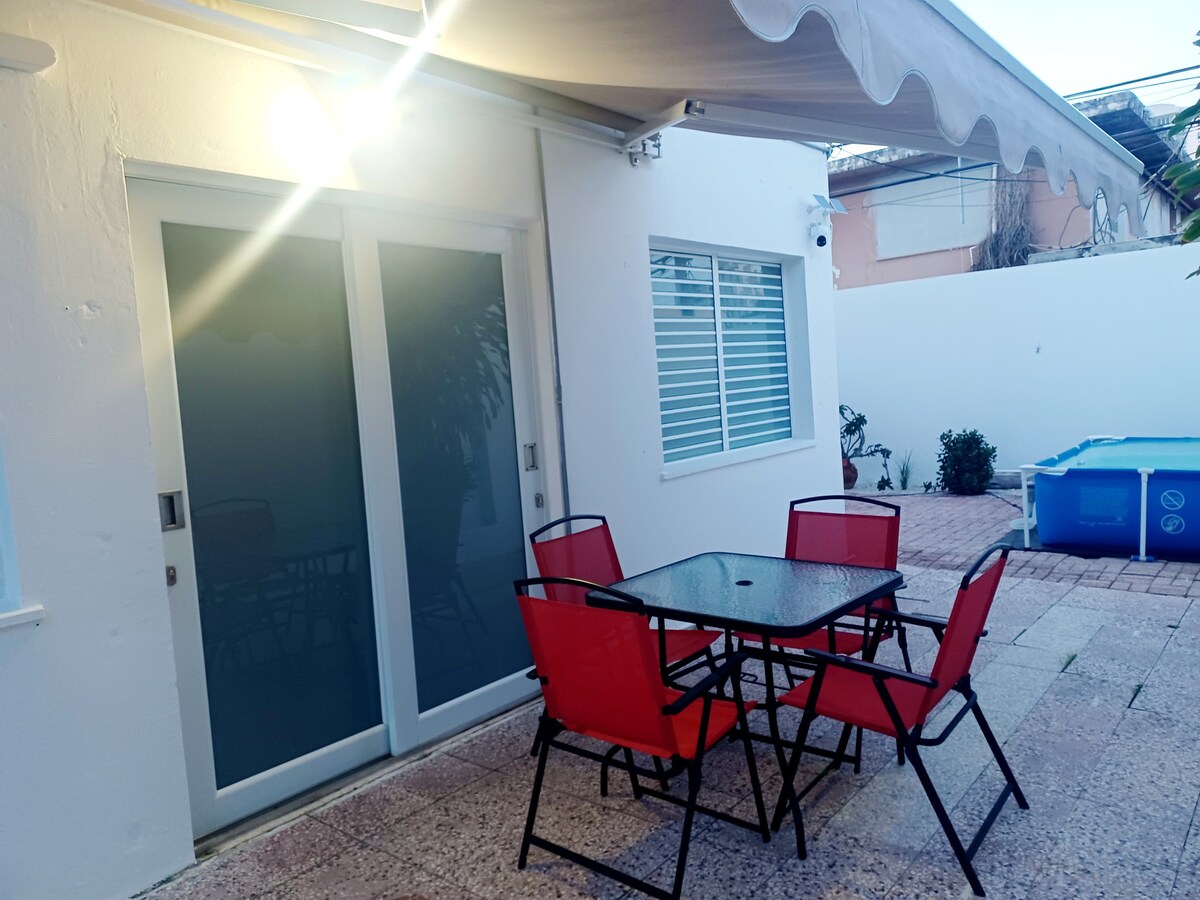 Appartement avec piscine privée. Il s'agit de vous faire sentir choyé, spécial, unique ; de vous sentir comme dans un complexe hôtelier tout en séjournant dans notre appartement méticuleusement conçu ! À quelques minutes de toutes les principales attractions du métro, des plages, des magasins haut de gamme, des installations médicales, du vieux San Juan et de la vie nocturne, cet espace confortable et douillet dispose de sa propre piscine privée, d'un patio, d'une pergola ; 1 chambre avec 2 lits Queen Size, un salon, une cuisine gastronomique, une salle de bain spacieuse et une buanderie. Vous apprécierez votre expérience et ne l'oublierez pas de sitôt.