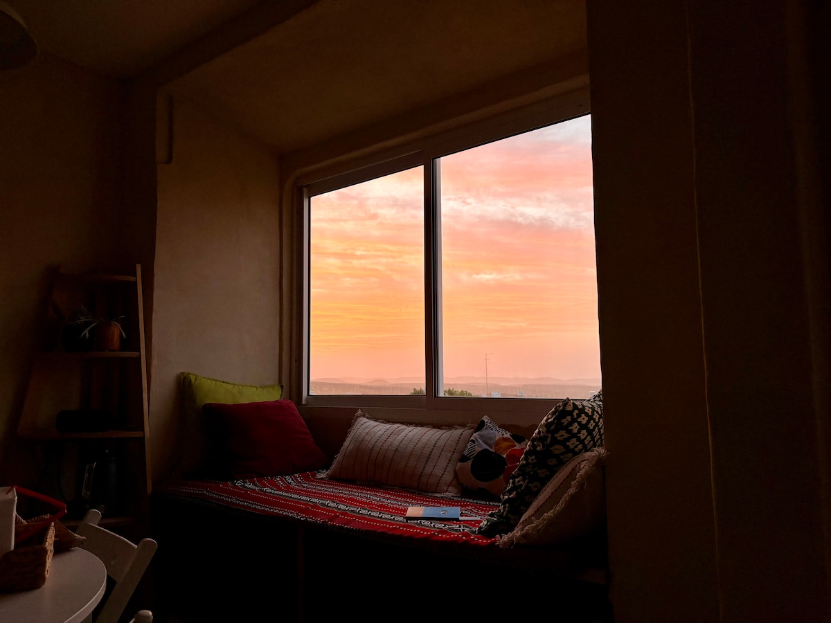 Au cœur de la communauté magique de Zuqim, un logement intime, chaleureux et soigneusement conçu vous attend : une combinaison parfaite de luxe, de calme et d'intimité dans le désert. Le logement a été rénové et modernisé et est actuellement rouvert aux réservations. Le logement est particulièrement adapté aux couples à la recherche de vacances romantiques et relaxantes, ainsi qu'aux petites familles qui veulent profiter de la nature du désert sans sacrifier le confort et les petits plaisirs.