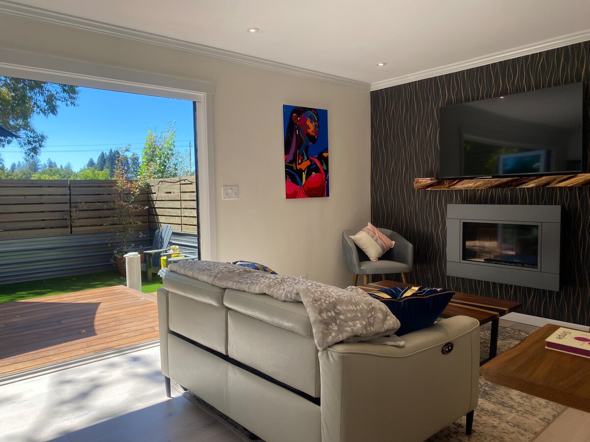 Découvrez notre confortable retraite de deux chambres, à quelques minutes du centre-ville. Ce charmant espace dispose d'ustensiles de cuisine de qualité supérieure, d'un bidet et d'un porte-serviettes chauffant. Profitez d'une vie intérieure-extérieure transparente avec des portes qui s'ouvrent sur une terrasse, avec un barbecue et un coin repas extérieur. Situé en face de sentiers de randonnée pittoresques et à seulement quatre pâtés de maisons de la rivière Russian, c'est l'endroit idéal pour les amoureux de la nature. Malgré sa petite taille, chaque détail est soigneusement conçu pour votre confort. Réservez un séjour dès aujourd'hui