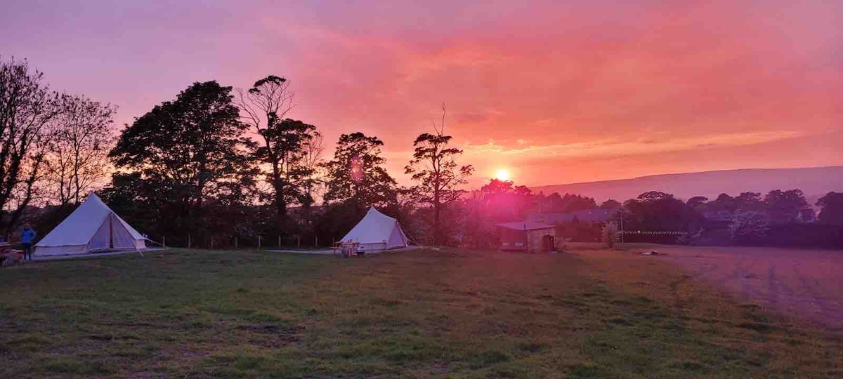 Un emplacement idéal pour découvrir la vallée de Ribble, dans une ferme en activité avec une vue imprenable. Des tentes luxueuses, spacieuses et chauffées (si nécessaire) peuvent accueillir jusqu'à 2 adultes et 3 enfants. Ou 3 adultes (sur demande). Situé à seulement minutes de la ville marchande de Clitheroe, avec château et musée. Beaucoup de beaux sentiers pédestres/cyclables et des sites historiques dans l'espace. À 4 minutes en train (gare en face) de Whalley avec ses boutiques, ses bars indépendants et ses cafés originaux. Entouré de restaurants et de pubs gastronomiques.