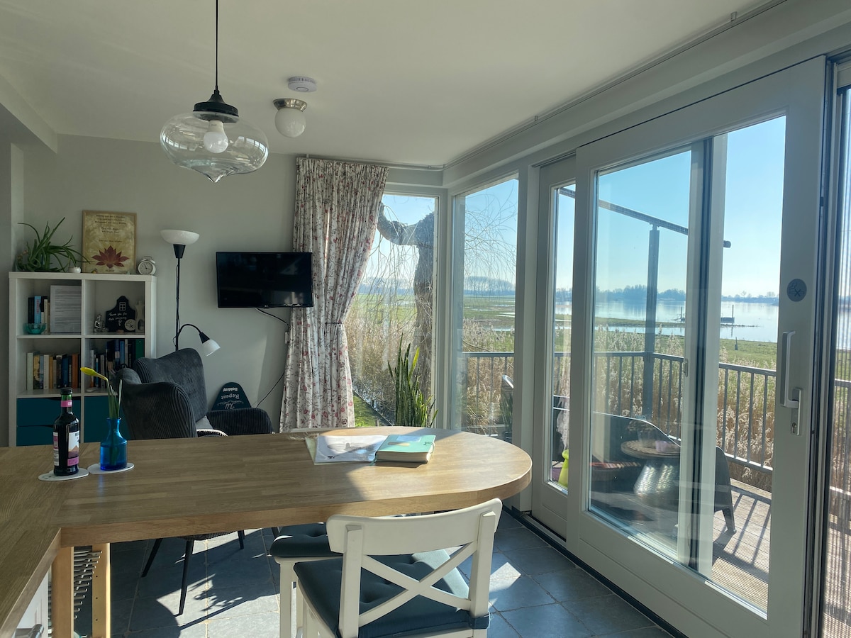 Entre Zaltbommel, situé dans le Bommelerwaard et Den Bosch, se trouve au milieu du pays des rivières, 't Kreekhuske. Cet appartement, où vous pouvez également séjourner plus longtemps, dispose de sa propre entrée. Vous bénéficiez ainsi d'une intimité absolue. Vous avez une vue sur l'Afgedamde Maas. Entouré de prairies, vous vous imaginez au milieu de la nature. L'appartement dispose d'une terrasse privée, avec pergola électrique, jetée et possibilités de sports nautiques. Au 1er étage, vous trouverez un autre appartement pour 2 personnes, que vous pouvez également réserver.