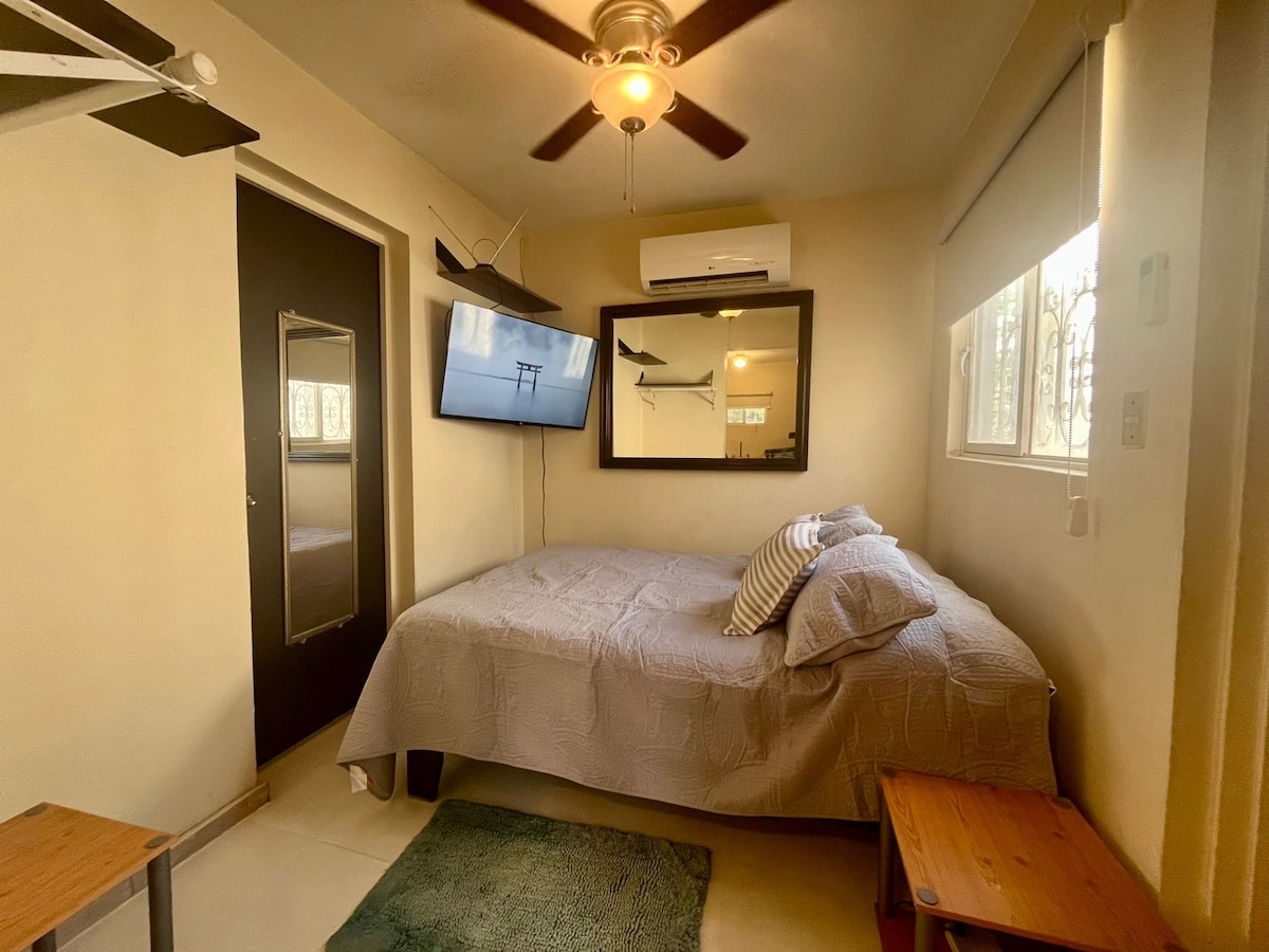 Profitez de la simplicité de cet hébergement calme et central, la chambre est située à l'étage, dispose d'une terrasse et d'une salle à manger extérieures qui sont partagées avec 2 autres chambres, au rez-de-chaussée se trouve une maison complète qui est également louée via l'application, l'accès est le même pour les deux étages, cependant chaque chambre est indépendante de la maison, ils ne partagent que l'accès. Le quartier est très calme et dispose d'une surveillance 24 heures sur 24.