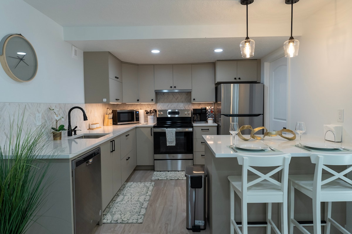 Être loin de chez soi peut être inconfortable ! Mais ce n'est pas une fatalité. Cet adorable appartement au sous-sol est parfait que vous rendiez visite à votre famille, que vous travailliez à distance ou que vous ayez besoin d'une nuit d'absence. Vous avez l'impression d'être dans un hôtel de charme avec l'intimité d'un quartier calme et tout le confort d'un chez-soi (parking sans l'entrée délicate dans l'arrière-cour, cuisine complète et buanderie, espaces de travail adaptés à Zoom, etc.). EN PLUS, vous êtes situé au centre des comtés de l'Utah et de Salt Lake et à quelques minutes des montagnes !