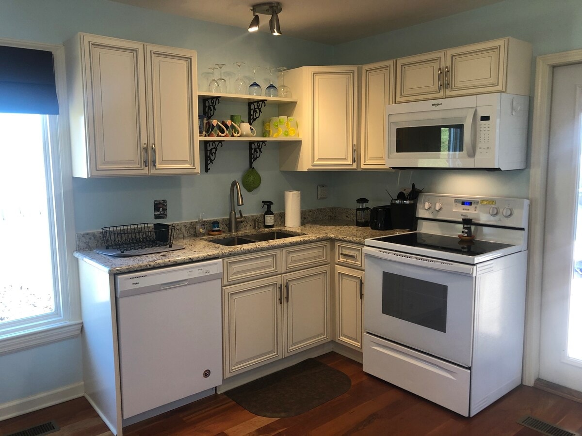 Détendez-vous en famille dans ce chalet entièrement rénové construit dans les années 1940. Doté de deux chambres avec beaucoup d'espace de détente confortable. Profitez de la cour arrière avec un jacuzzi (gonflable) et un éclairage de nuit. Faites griller sur le charbon de bois ou détendez-vous près du feu. Juste à portée de voix du verger de pommiers où vous pourrez satisfaire vos papilles avec une pomme fraîche croquante, un granité au cidre de pomme ou une tarte aux pommes frite. Bien que rurale, cette maison est à seulement 4 miles de l'autoroute 40 ! À environ une heure d'Asheville et de Charlotte.