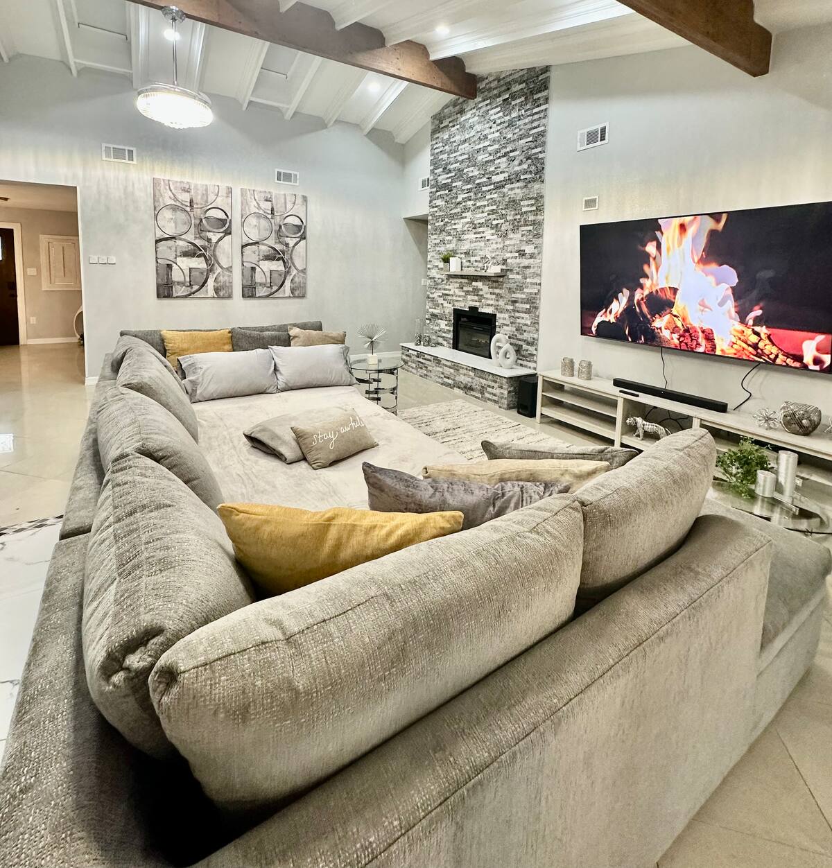 Évadez-vous dans un monde d'opulence et de tranquillité dans notre maison somptueuse, conçue pour dépasser vos rêves les plus fous. Détendez-vous avec style et profitez de l'expérience de luxe ultime, notamment : - Piscine étincelante avec chaises longues et parasols - Spa chauffé revitalisant et tapis de yoga - Balançoire de piscine relaxante pour des moments sereins - Système de divertissement 86" à la pointe de la technologie avec système audio Sonos - des espaces de vie spacieux avec un mobilier somptueux ; - Cuisine gastronomique avec appareils haut de gamme - Chambres somptueuses et extérieur