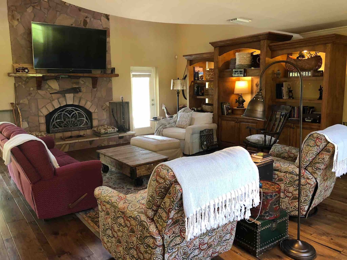 Vivez la vie au bord du lac ! Admirez le coucher de soleil sur le lac Huntley depuis la fenêtre de votre cuisine et votre foyer ; explorez le lac en amarrant votre embarcation (ou louez la nôtre) dans votre jardin, ou utilisez notre kayak, canoë et SUP inclus. Cette maison confortable dispose de 3 chambres, 2 salles de bain et peut accueillir jusqu'à 9 personnes confortablement. Profitez de beaucoup d'espace de vie, d'un grand porche grillagé, d'une cuisine équipée, d'un foyer et de grils pour barbecue. La maison comprend également une buanderie sur place, un chargeur pour véhicule électrique, un raccordement pour camping-car et un parking. Cuisine entièrement rénovée en 2024 !