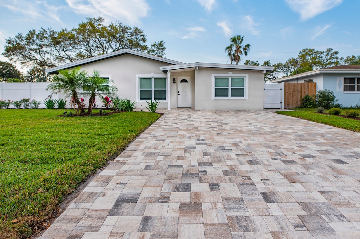 Petite suite privée entièrement rénovée avec parking privé, entrée privée séparée avec terrasse. L'espace est idéal pour 1 ou 2 personnes : petit, mais bien pensé. À 2 miles de la plage de Treasure Island. À 2,5 miles de la plage de St Pete ! Beau quartier pittoresque. Près d'un excellent spot de pêche. Kitchenette Salle de bain entière. Lit queen size confortable Climatiseur ❗️NOUS AVONS DE TRÈS BONS COMMENTAIRES, mais veuillez consulter avant de réserver « Cette suite est-elle faite pour vous ? » ci-dessous sous « choses à noter » pour avoir le voyage que vous désirez.