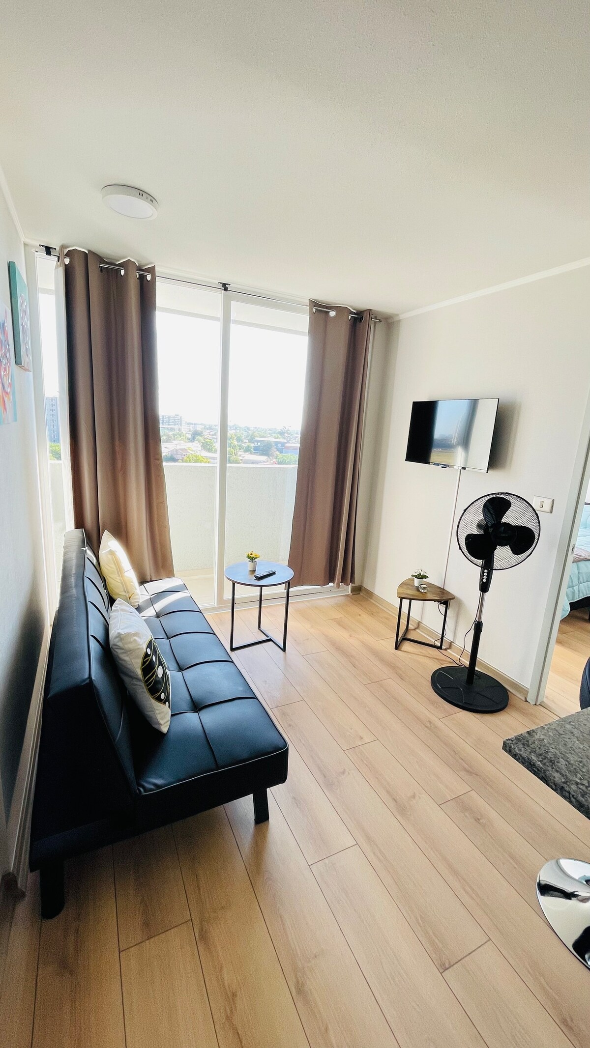 Appartement moderne avec une belle vue sur la cordillère 🤍 Situé dans un secteur central et calme, à un pâté de maisons du métro Conchalí, à 15 min de l'aéroport, à 10 min du centre de Santiago et à moins de 5 min à pied de l'hippodrome du Chili et du stade Santa Laura. 1 chambre + canapé-lit dans le salon Cuisine aménagée Salle de bain privée Balcon avec vue sur la cordillère Wifi et télévision avec applications Entièrement équipé Moderne, confortable et minimaliste Piscine, salle de sport, quincho, coworking et salle d'événements