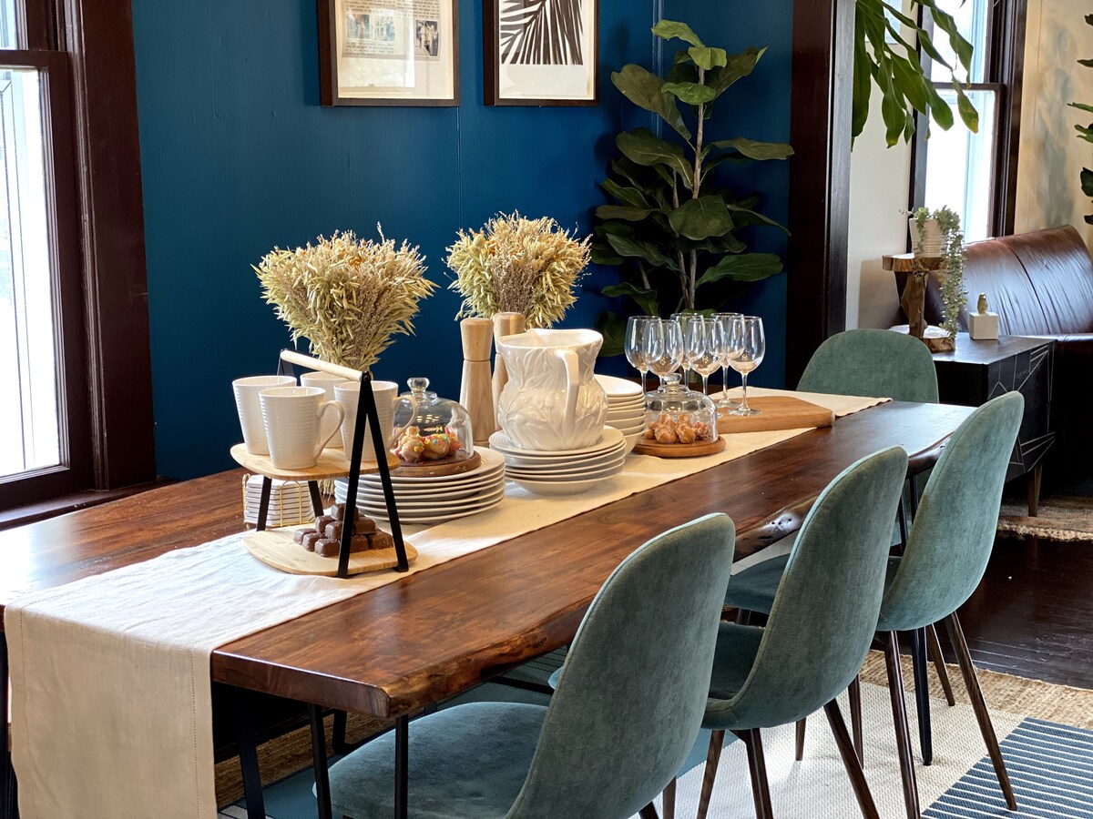 Ce chalet rénové avec goût allie des équipements modernes à un charme rétro... * 2 suites principales avec lit Queen * Quartier calme à distance de marche pour explorer la plus vieille ville de la nation * Baignoires à pattes de lion à l'intérieur et à l'extérieur (avec douches, bien sûr!) * Grand porche avec moustiquaire et divan suspendu * Stationnement pavé en dehors de la rue * Arrière-cour entièrement clôturée, barbecue Weber, foyer au gaz * Wi-Fi rapide et télévision intelligente * 2 pâtés de maisons de Fish Camp, Ice Plant, LaNuvelle, arrêt de tramway * 10 minutes à pied du centre-ville