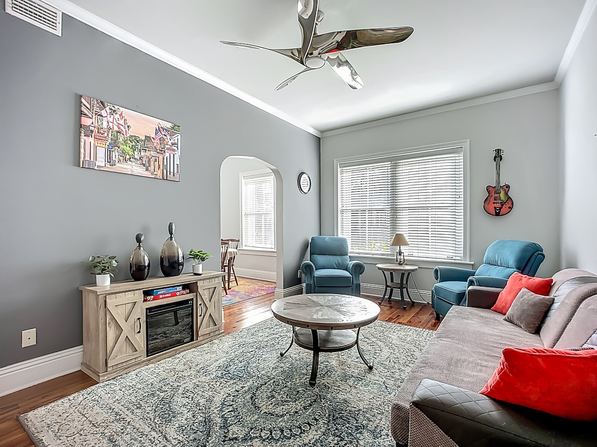 Découvrez la sérénité dans ce charmant joyau caché niché dans un quartier pittoresque du centre-ville. Une courte promenade vous mènera à des festivals animés à Francis Field et à St. Augustine, ses meilleurs restaurants, bars, visites et plus encore. L'art, la musique et la culture locale sont tissés dans le tissu même de ce lieu. Que vous vous détendiez avec un film, que vous savouriez un café du matin dans le jardin ou que vous vous prélassiez sur le patio avant, nous avons préparé l'escapade parfaite.