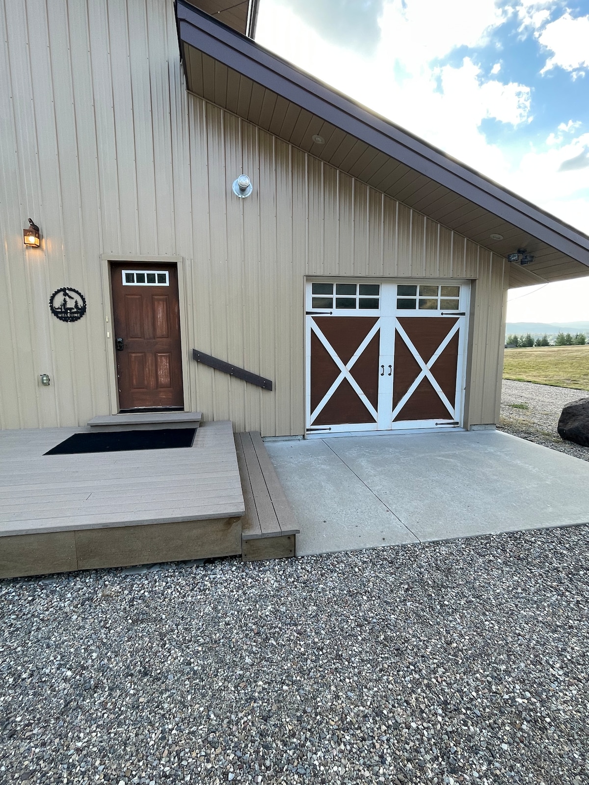 Profitez de votre séjour dans cette maison de 2100 pieds carrés construite en treillis à 2 miles du centre-ville de Victor sur 3 acres. La maison privée dispose d'une suite parentale en bas et d'une suite junior à l'étage, toutes deux avec des lits Queen Size. Les deux ont leur baignoire et douche privées. Salle familiale confortable reliée à la cuisine. Cuisine bien équipée pour votre plaisir de cuisiner et un barbecue juste à l'extérieur de la porte de la cuisine disponible pour une utilisation toute l'année. Profitez de beaux couchers de soleil depuis la terrasse du sauna ou détendez-vous sur la terrasse arrière de la maison.