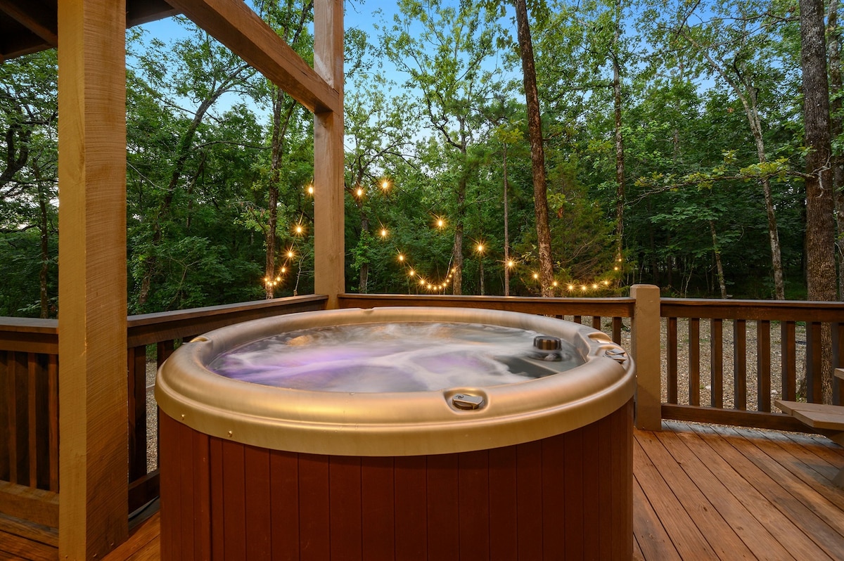 Double Arrow est une cabane privée unique en son genre, à 360* pour les couples, située au bout d'une belle route pavée au sommet d'une colline. Une fois arrivé, vous êtes complètement entouré de conifères, ce qui vous donne, à vous et à votre bien-aimé, une intimité totale. Admirez la vue sur le sommet des arbres sur la terrasse arrière tout en vous relaxant dans le jacuzzi après une journée amusante de randonnée sur le « Friends Trail » ou de navigation de plaisance sur le lac. Cette cabane unique sur le thème de l'Oklahoma regorge d'équipements amusants qui raviront les escapades romantiques ou votre petite famille !