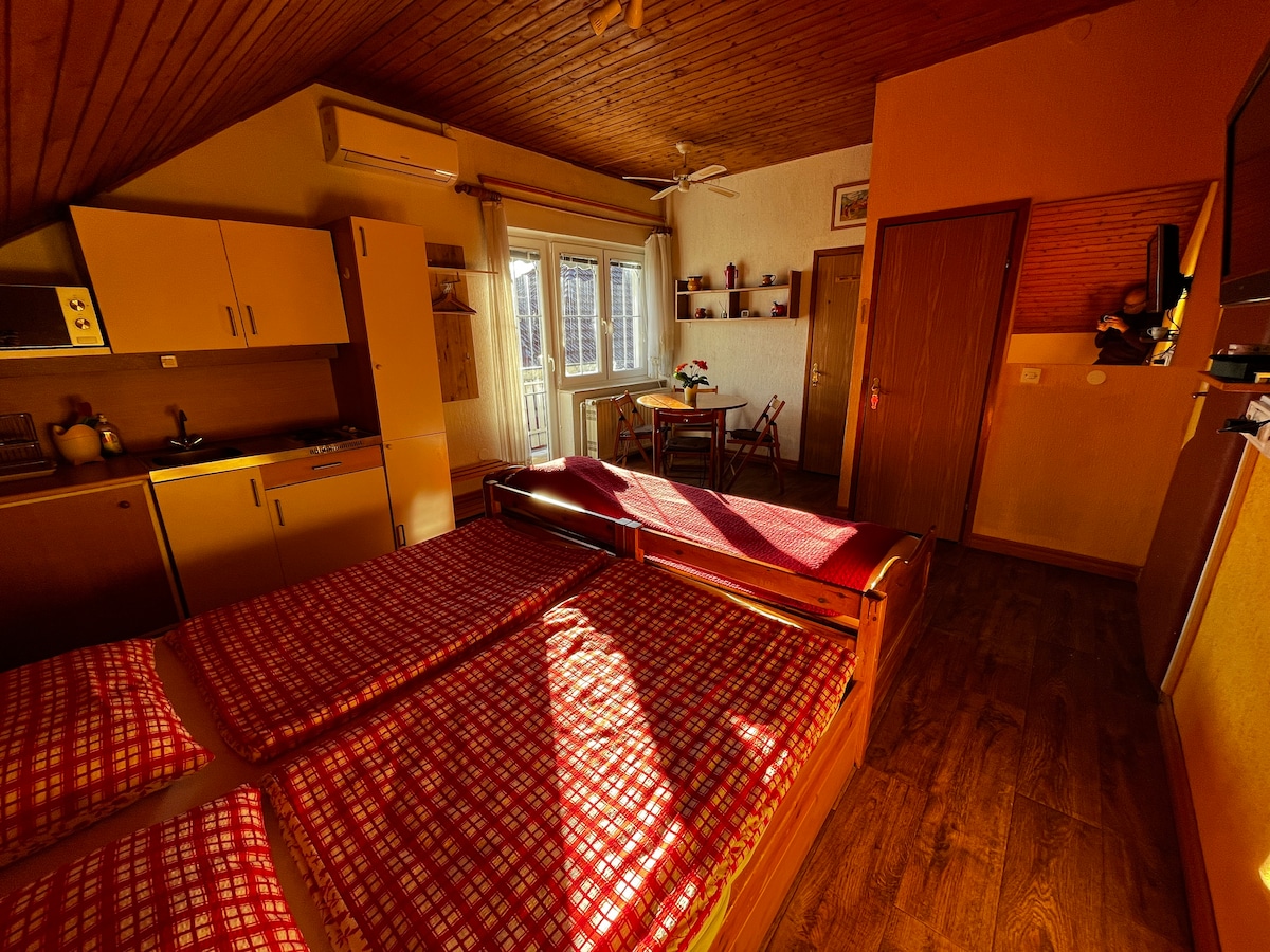 Two bedroom apartment Neli can accomodate up to six guests as it has a double, twin single and a double sofa beds available. The living room is spacious and has a smart TV for entertainment, it also has the dining area and well equipped kitchen. Guests have access to a private bathroom, private parking on location and wifi connection throughout the property. Before the entrance of the apartment there is a seating area for picnic and BBQ grill.