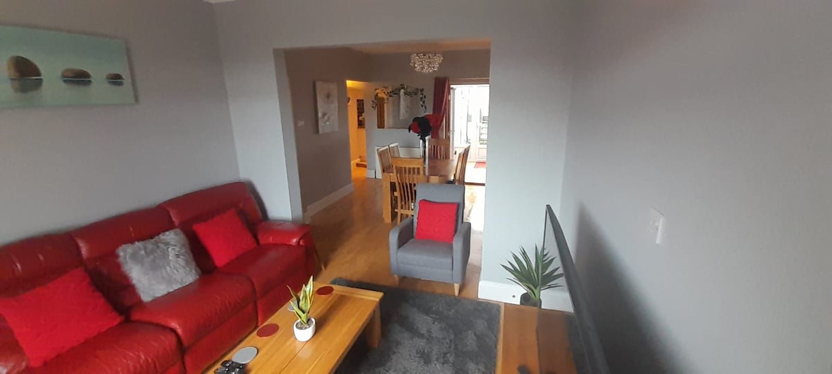 Profitez d'un logement élégant et central. La maison de vacances est située sur Railway Terrace, à seulement quelques minutes à pied de la gare. Récemment rénovée, cette maison de vacances dispose de trois grandes chambres, chaque chambre possède deux lits simples de haute qualité avec fermeture à glissière et lien, de sorte que les chambres peuvent être soit de grandes chambres doubles, soit des chambres à deux lits sur demande. La maison de vacances dispose d'une cuisine entièrement équipée comprenant un lave-vaisselle, un lave-linge et un sèche-linge. Des permis peuvent être achetés pour le stationnement, veuillez demander avant.