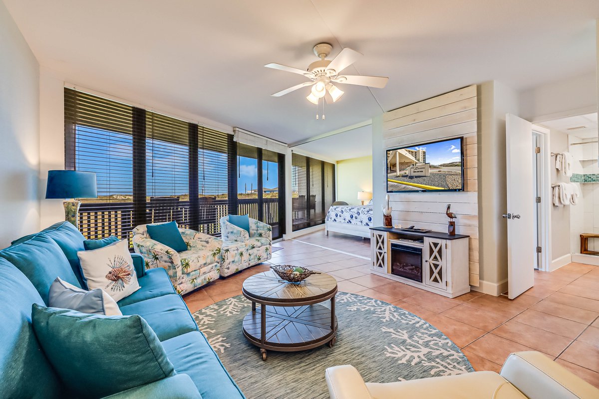Cet appartement est entièrement meublé avec un lave-linge et un sèche-linge empilables, un concept ouvert de la salle à manger au salon. La chambre principale dispose d'un lit King Size confortable avec une décoration côtière et une télévision à écran plat. Il y a une entrée/sortie privée par la porte coulissante vers le patio qui donne sur la baie ! La deuxième chambre dispose de 2 lits jumeaux, d'une télévision à écran plat, de beaucoup d'espace de rangement et d'une vue sur la baie. Le séjour dispose d'un canapé convertible queen size, d'une télévision à écran plat et d'un accès au patio par les portes coulissantes.