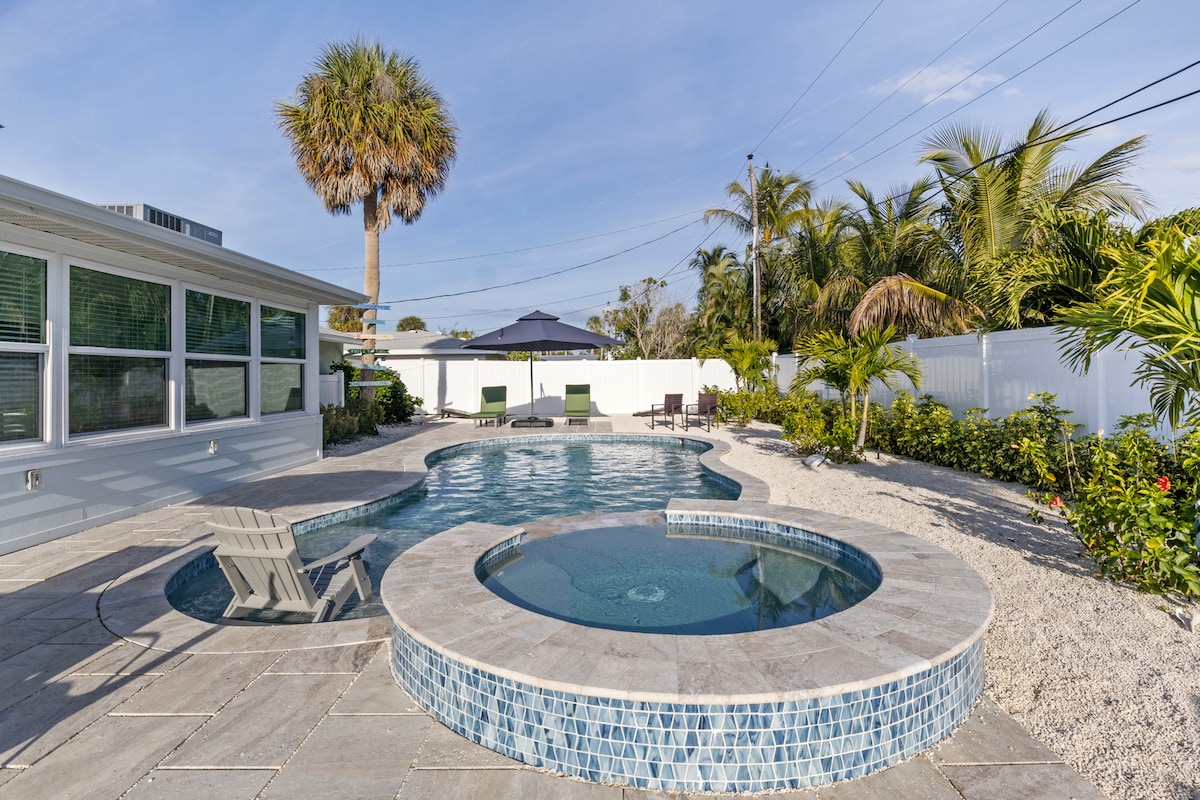 Charming Salty Harbor se trouve dans un coin pittoresque et exclusif d'AMI et dispose d'une piscine privée chauffée et d'un grand stationnement pour 2 véhicules et même un bateau : - Demandez-nous si vos dates ne correspondent pas à notre calendrier! - Si vous n'avez pas un seul animal de compagnie de 50 lb, veuillez en discuter avec nous - L'un des logements jumeaux de la boutique MyAnnaMariaStay, cherchez-nous! Vous allez adorer l'ambiance luxueuse du milieu du siècle, la cour luxuriante et une promenade de 6 minutes jusqu'à la plage, Publix ou l'arrêt du tramway. AMI a été élu l'un des 50 meilleurs lieux de vacances au monde en 2024