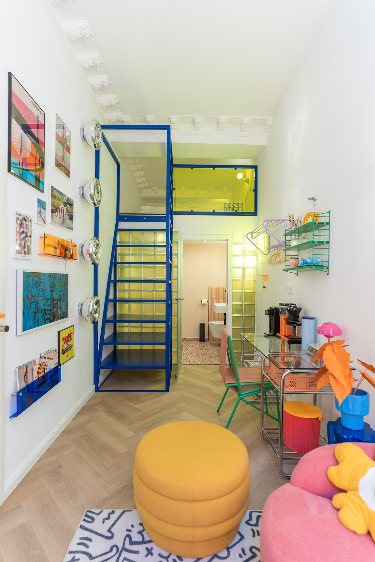 Bienvenue dans notre minihotel RetroPop au cœur de Hambourg ! Les chambres élégantes avec salles de bains privées pouvant accueillir jusqu'à 2 personnes offrent le plus grand confort et intimité. Chaque chambre d'hôtel a été soigneusement pensée et meublée avec amour pour rendre votre séjour inoubliable. La chambre est équipée d'une niche de couchage confortable avec un lit mezzanine ainsi que d'un élégant coin salon avec un canapé. L'espace de travail est parfait pour commencer de manière productive. Au plaisir !