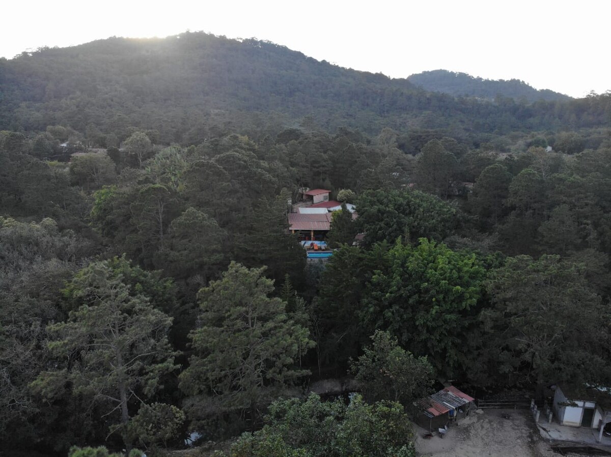 Si vous cherchez l'escapade de week-end parfaite, vous êtes au bon endroit. Une maison de campagne de style colonial dans la ville pittoresque d'Ojojona avec un joli jardin entre les chambres. La maison dispose d'une charmante terrasse qui donne sur le jardin et les montagnes environnantes. Il y a une piscine à débordement climatisée et un jacuzzi avec les vues les plus époustouflantes et uniques avec un climat ensoleillé le jour et froid la nuit. Un foyer et une cheminée parfaits pour s'mores ou une soirée romantique.