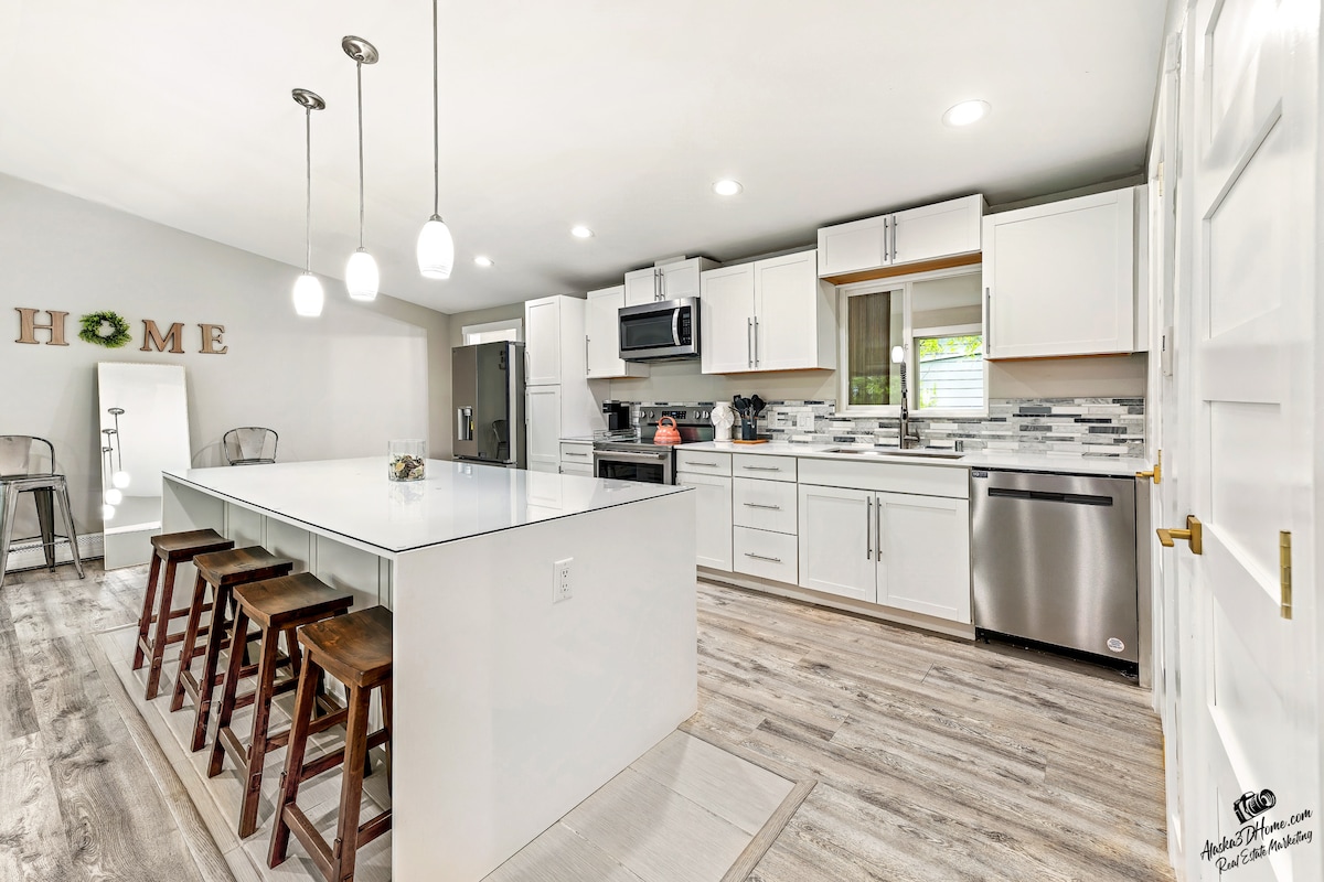 Cette propriété a été rénovée avec soin et mise à jour avec de nouveaux meubles partout pour offrir une expérience de confort et de style avec une élégance décontractée. Notre propriété est située au centre, dans le quartier U-Med ! C'est le lieu idéal pour se poser après avoir visité l'Alaska. Il est également très pratique pour les voyageurs qui doivent être à proximité de l'hôpital Providence, de l'ANMC et de l'UAA pour le travail et les rendez-vous. Jardin privé ? Oh oui.