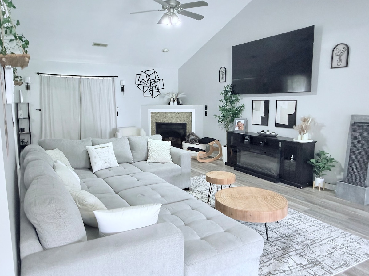 Lumineux, spacieux et adapté aux familles! Cette maison dispose de 3 chambres, d'un salon/chambre, de 2,5 salles de bain et d'une salle de jeux. À quelques minutes du centre-ville de High Point, de l'HPU, des restaurants et des boutiques. À seulement 25 minutes en voiture de Winston Salem ou de l'aéroport de Greensboro/PTI. Parfait pour les week-ends en famille, les visites universitaires et professionnelles, ou les groupes voyageant pour des événements dans la triade. On est fiers d'avoir un logement propre et accueillant. Assaini par des pros après chaque séjour pour que vous puissiez profiter au maximum de votre temps.