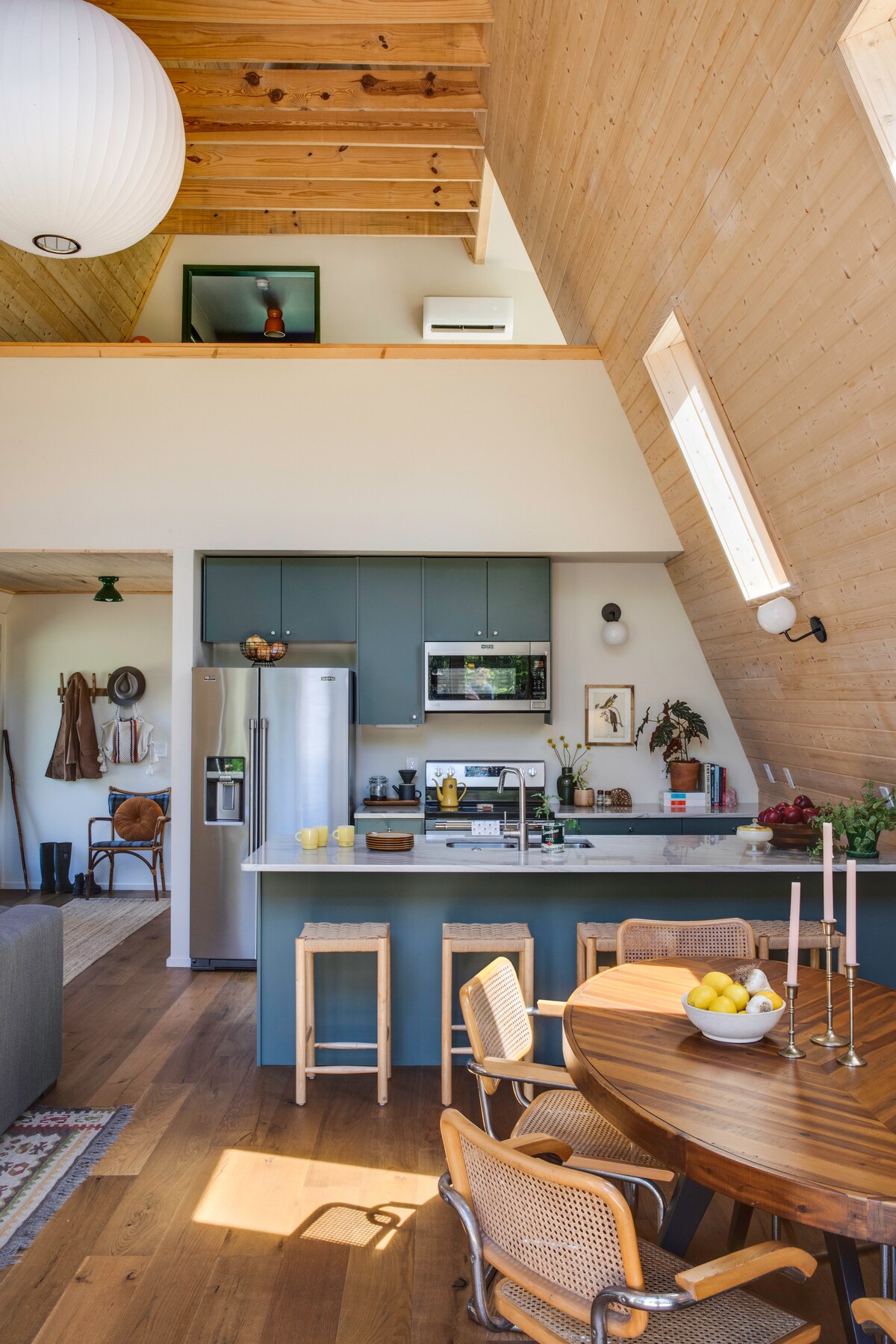 *Nous avons récemment ajouté un ventilateur supplémentaire au loft pour aider à la chaleur estivale et un foyer avec des sièges à l'arrière.* Wi-Fi par fibre optique, cuisine bien approvisionnée et barbecue extérieur ! Emplacement incroyable, juste derrière le terrain de camping à l'entrée du parc d'État Petite Jean ! Ce logement affiche un style résolument unique. La cabane en A est conçue soigneusement pour maximiser l'espace sans sacrifier les équipements.