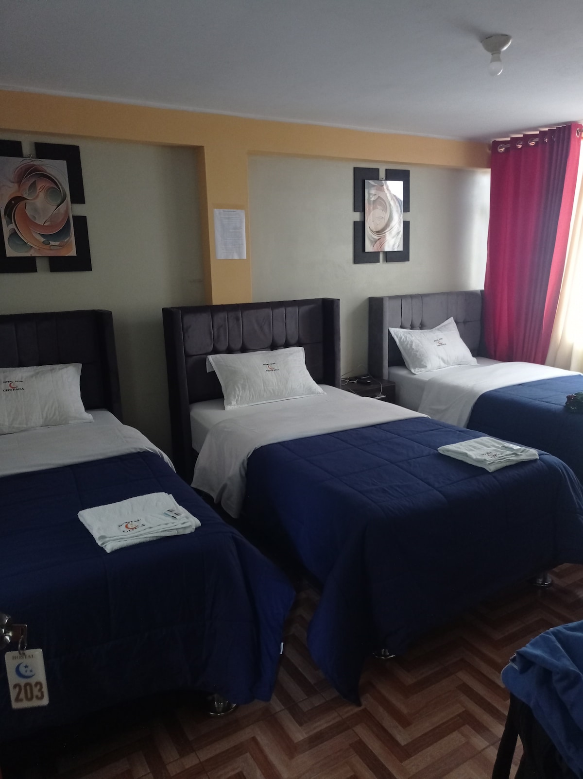 Situé dans le centre animé de Huancayo, l'Hôtel Orlak vous invite à découvrir une expérience d'hébergement confortable, moderne et accessible. Avec une attention personnalisée et une ambiance cosy, c'est l'endroit idéal pour les voyageurs qui cherchent à se détendre après avoir exploré la beauté culturelle et naturelle de la ville. Nos chambres sont conçues pour offrir confort et tranquillité, avec des services essentiels tels que Wi-Fi gratuit, télévision et espaces communs pour partager des moments spéciaux.