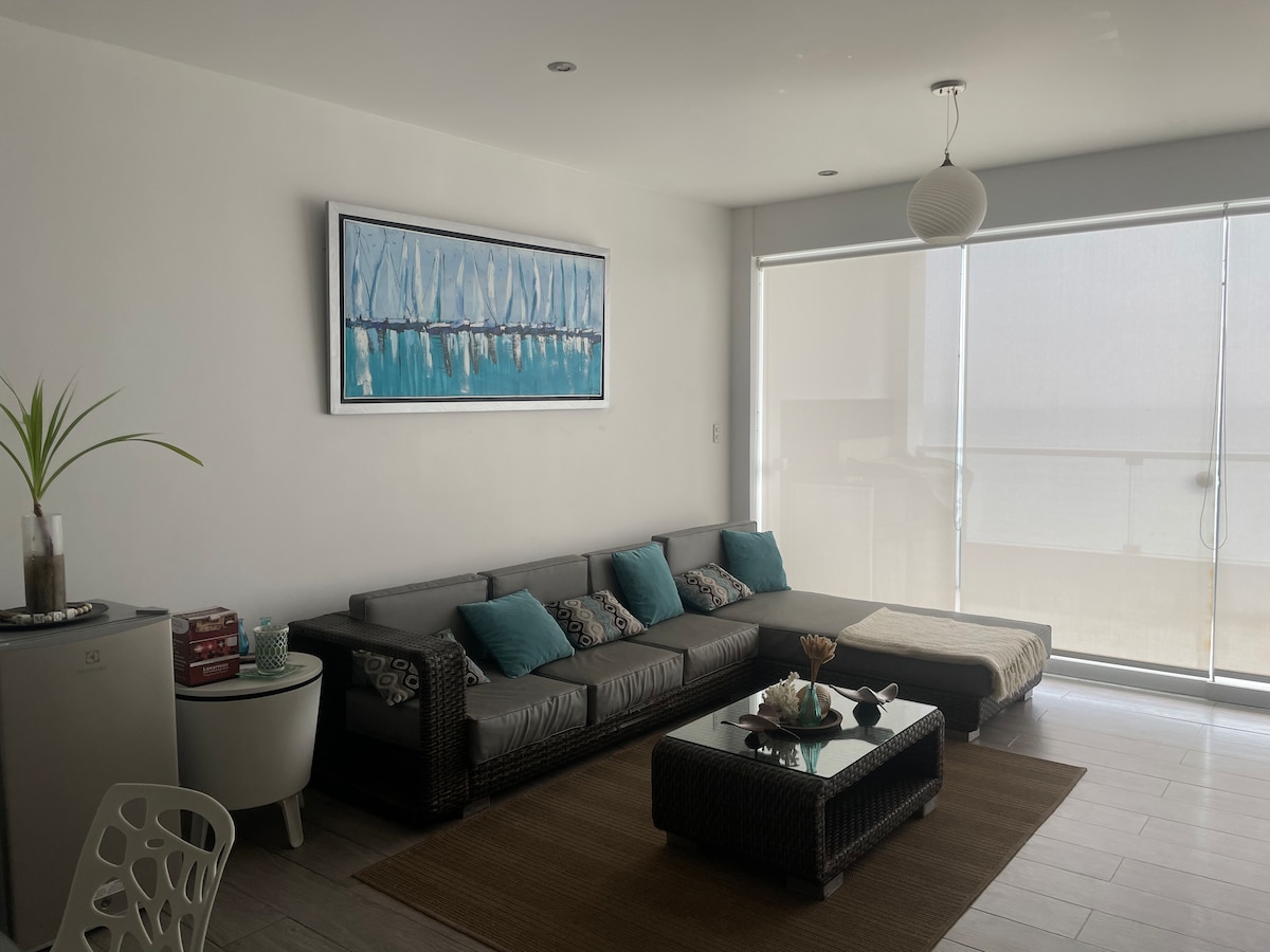 Par Giancarlo Sotil Gallegos. Appartement dans la copropriété Ocean Reef - San Bartolo. 3 chambres, 3 salles de bains. 1 lit queen-size et 4 lits à une place et demie (2 par chambre). Avec vue sur la mer et jardin intérieur, entièrement meublé et équipé avec TV, ustensiles de cuisine, linge de maison, câble, internet, netflix, hamac, garage, piscine, bar, piscine familiale avec barbecue, sauna, jacuzzi, salle de gym, salle de yoga, casiers de plage. Sortie à la plage de sable à quelques pas.