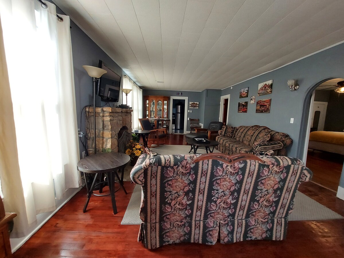 Détendez-vous en famille dans notre bungalow centenaire de plain-pied. Nous proposons 3 chambres, pour 6 personnes. L'intérieur a été récemment rénové, y compris le nouveau chauffage central et la climatisation. Nous sommes toujours en train d'embellir l'extérieur. Profitez du quartier calme tout en vous relaxant sur le grand porche confortable. Notre maison est à 3 pâtés de maisons de la plus grande place de ville des États-Unis. Elle est également à quelques minutes à vélo des sentiers Lehigh Portland et du parc d'État Prairie Spirit Trail. Iola est le siège de l'Allen Community College.