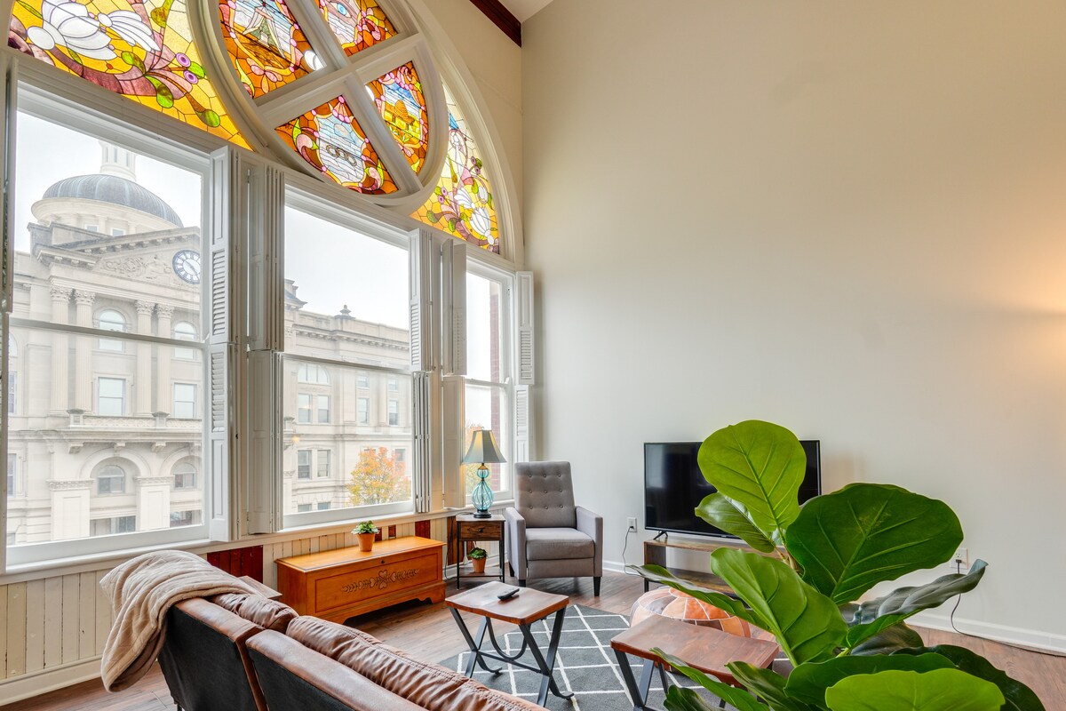 Proche des boutiques | Chauffage central et climatisation | WIFI gratuit | Lofts UB Si vous cherchez une retraite de couple, vous êtes au bon endroit ! Ce loft studio d'une salle de bain est pratique, confortable et élégant, avec un immense vitrail et des poutres apparentes. Explorez les attractions locales comme Sunken Gardens et Hanging Rock National Natural Landmark avec votre bien-aimé avant de revenir préparer un repas fait maison dans la cuisine et blottissez-vous devant la télévision connectée.