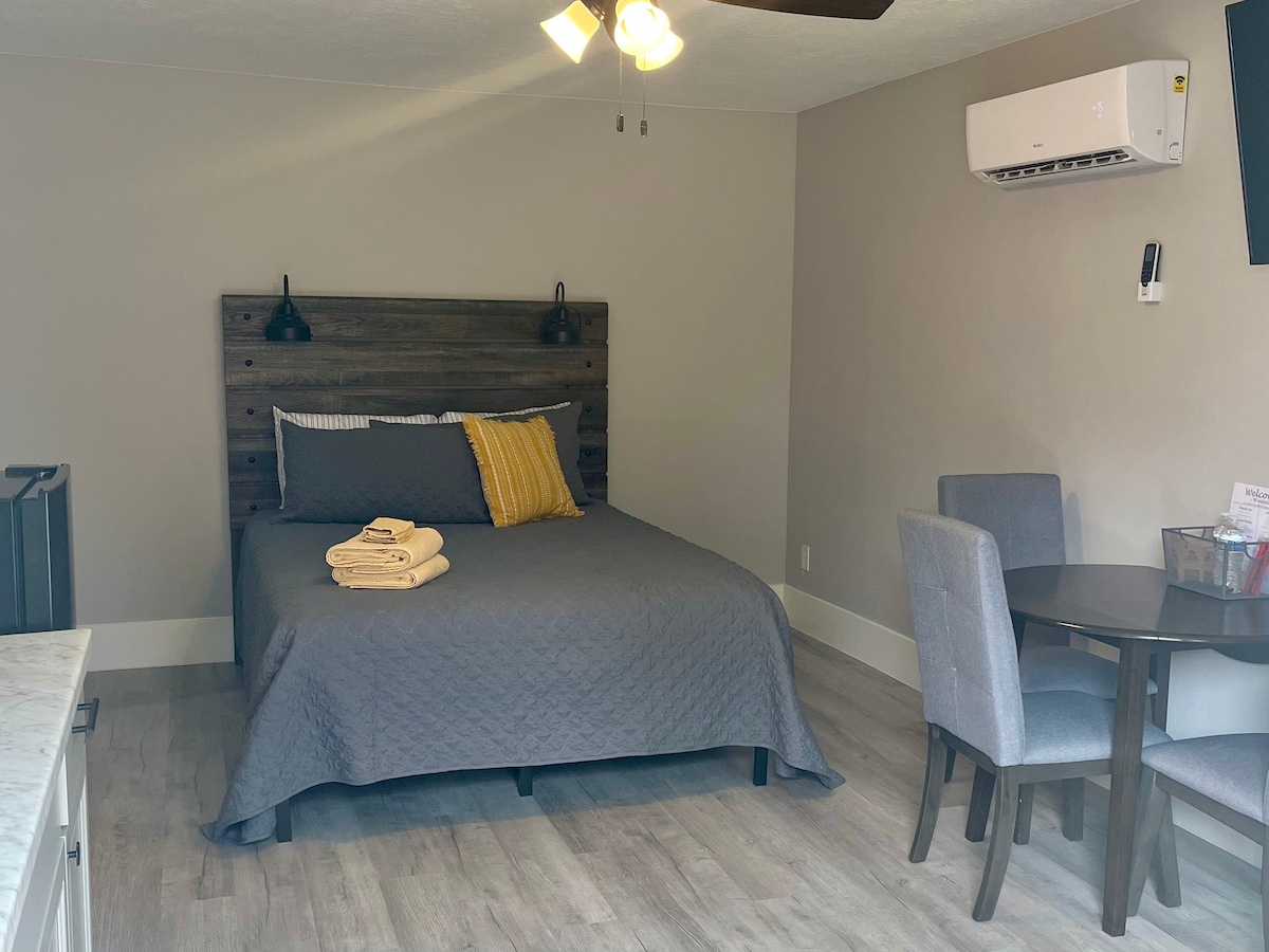 Installez-vous confortablement dans cet espace rustique. À seulement 10 minutes de Walmart, nous sommes à 1,5 mile sur une route de campagne et le sentiment « là-bas » est ce qui nous rend si uniques et attrayants. Réveillez-vous avec une vue sur la montagne à chaque fenêtre! Situé sur une propriété multifamiliale avec 🐎, 🐕, 🦆 et 🐓! Cuisinez vos propres repas dans la cuisine complète avec des ustensiles, des casseroles, de la vaisselle, du café et plus encore. Les produits alcoolisés et le tabac ne sont PAS autorisés sur la propriété. Beaucoup de places de stationnement et chargeur de niveau 2 pour 15 $/jour sur demande.
