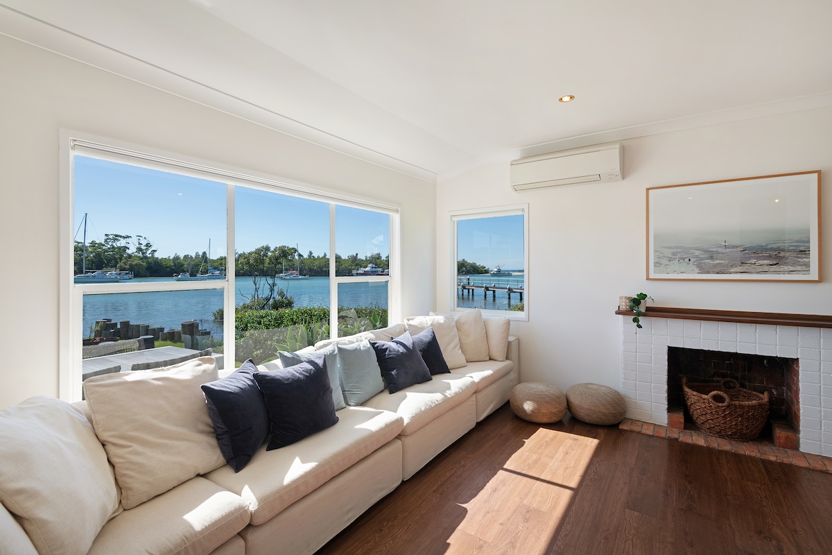 Profitez de la meilleure vue sur l'eau de Huskisson à Tide, un charmant chalet côtier situé sur Currambene Creek, à l'embouchure de la baie de Jervis. Promenez-vous dans la ville pour un brunch, des boutiques et des brasseries. Avec une ambiance détendue, élégante et balnéaire, beaucoup de lumière, des vues spectaculaires et une cour arrière herbeuse avec un accès direct à l'eau ainsi qu'un foyer, vous tomberez amoureux de Tide. La maison est entièrement équipée, confortable et joliment meublée, ce qui en fait le pied idéal pour les couples ou les familles. Les animaux sont bienvenus aussi.