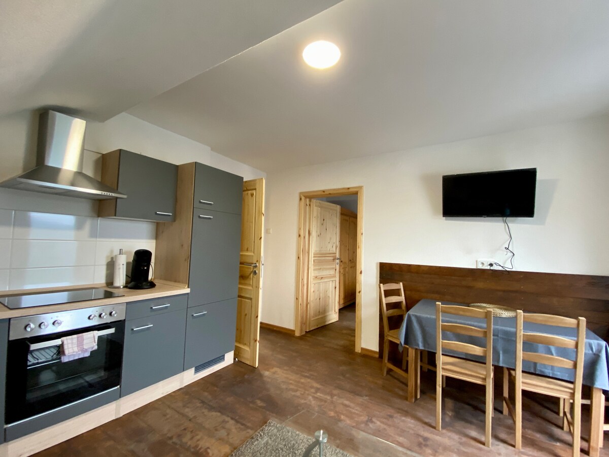 Un appartement de vacances élégant et confortable de deux chambres pouvant accueillir jusqu'à quatre personnes, avec une terrasse et une vue imprenable sur la vallée et les montagnes en contrebas. Un sauna en baril de cèdre est disponible (en supplément). L'ensemble de l'appartement a été rénové en mars 2024, y compris un nouveau poêle de sauna (il devient vraiment, vraiment chaud maintenant), des panneaux acoustiques, une nouvelle cuisine avec des appareils Bosch (four, lave-vaisselle), une douche à eau de pluie, un lave-linge avec sèche-linge et de nouveaux lits. Vous pouvez également visiter notre troupeau de Highlanders écossais !