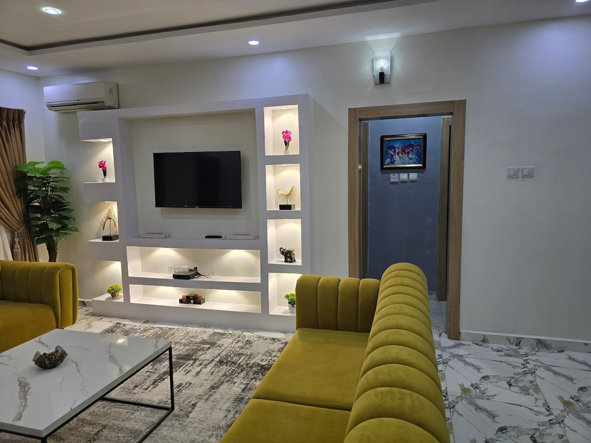 Votre appartement familial offre un confort exceptionnel avec une télévision intelligente, une connexion Internet illimitée et une sécurité 24h/24 soutenue par un système de secours solaire fiable. Il dispose d'une cuisine entièrement équipée, de la DSTV et de Netflix, de l'eau courante, d'une machine à laver et de la climatisation dans toutes les chambres. Les voyageurs profitent aussi d'un service de ménage régulier, d'un stationnement gratuit et d'un environnement résidentiel paisible. Exclusivement pour votre usage, cet espace strictement résidentiel offre intimité, paix et confort ultime.