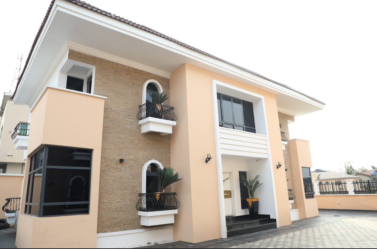 * Idéalement situé dans un domaine fermé. * électricité 24h/24 * Internet par fibre * Séjour meublée contemporaine avec canapé en cuir * Machine à laver * Téléviseurs intelligents grand écran, Netflix, DSTV, lecteur CD/DVD * 4 chambres 4 salles de bain attenantes avec télévision connectée dans la chambre * Entièrement climatisé * Cuisine entièrement équipée * Salle de bain carrelée avec chauffe-eau et douche sous pression * À 3 minutes du centre commercial Ikeja City/Shop-rite * À 10 minutes de l'aéroport local et à 15 minutes de l'aéroport international * Nettoyage de la maison