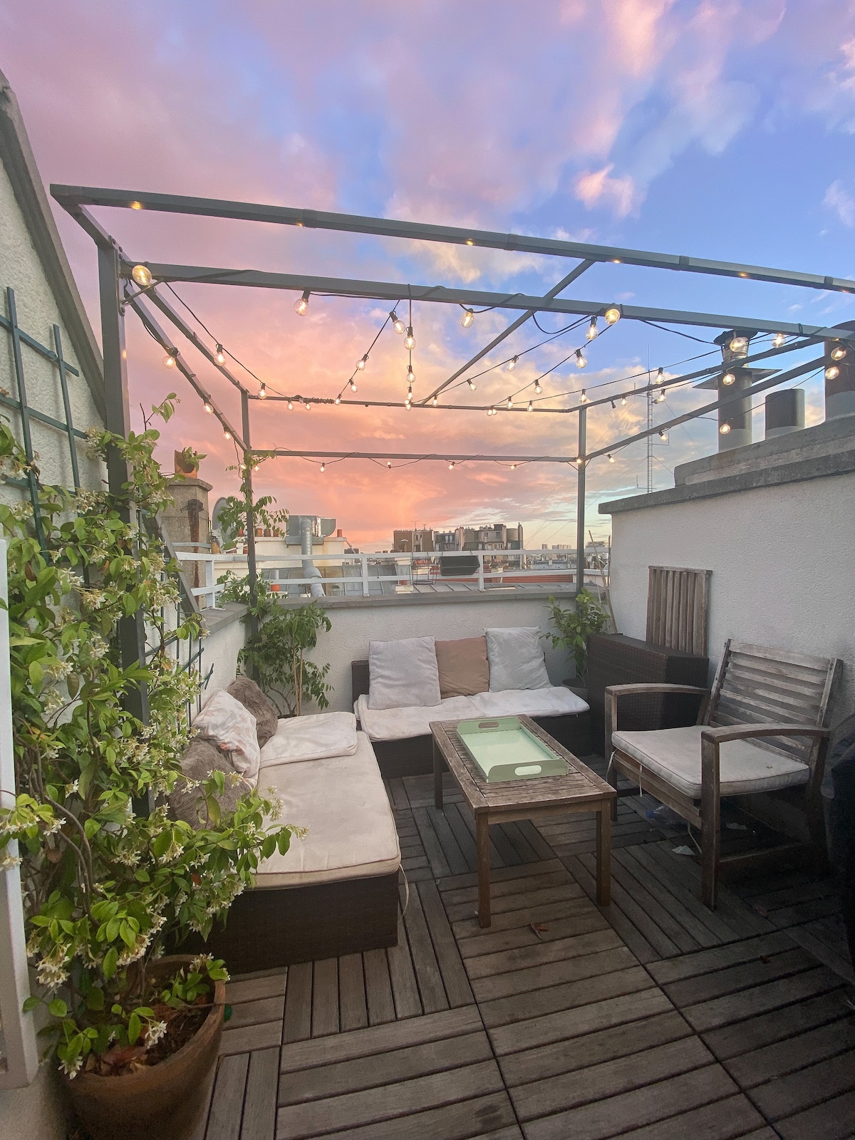 Cet espace unique, situé au cœur du Marais, dispose d'une terrasse privée unique en son genre, avec une vue imprenable sur la tour Eiffel et la ligne d'horizon parisienne. Parfait pour voir tous les feux d'artifice des vacances ou tout simplement pour profiter de votre café du matin ! L'appartement dispose d'une chambre, ainsi que d'un loft avec un deuxième lit, permettant un séjour confortable pour jusqu'à 4 personnes.