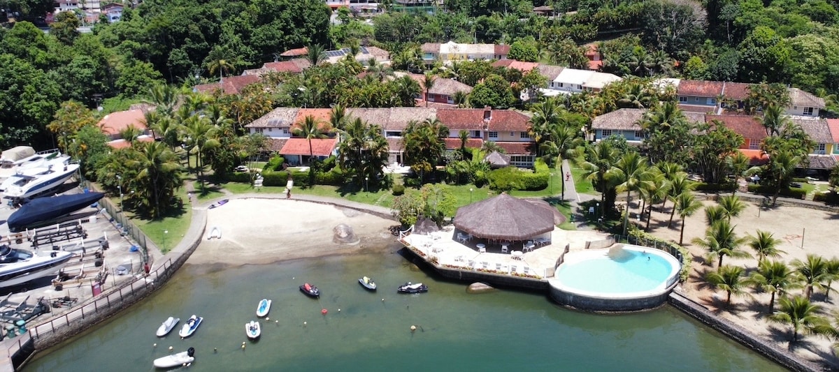 La structure d'un complexe hôtelier avec la sécurité d'un appartement en résidence fermé (le nom complet et l'identité de tous les invités doit être spécifiée pour l'entrée), à 128 km de Rio de Janeiro. La plage privée et la piscine océanique se trouvent à pied. Marina, club, bar, restaurants, salle de sport, spa, sauna, courts de tennis et football. Appartement avec 2 chambres confortables (suite double avec hamac sur le balcon et chambre avec 2 lits simples, lit pour bébé portable), cuisine complète. Vue magnifique sur Ilha Grande !