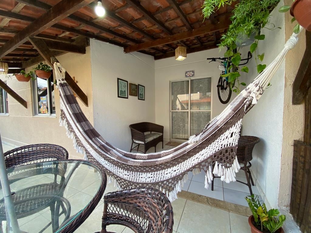 Sentez-vous chez vous dans notre espace calme et bien situé à Ilhéus. Un quartier sûr (Pontal), à proximité de nombreux commerces tels que marchés, restaurants, bars, pubs, épiceries fines, pharmacies, etc. L'aéroport est à 5 minutes à pied de l'endroit. Le centre historique est à 3 km. Les plages commencent à 1,5 km et s'étendent sur une longue bande côtière. Il y a dans le quartier une petite plage (Concha) avec des eaux plus calmes située derrière le Morro de Pernambuco, un endroit préservé avec une belle vue sur la ville.