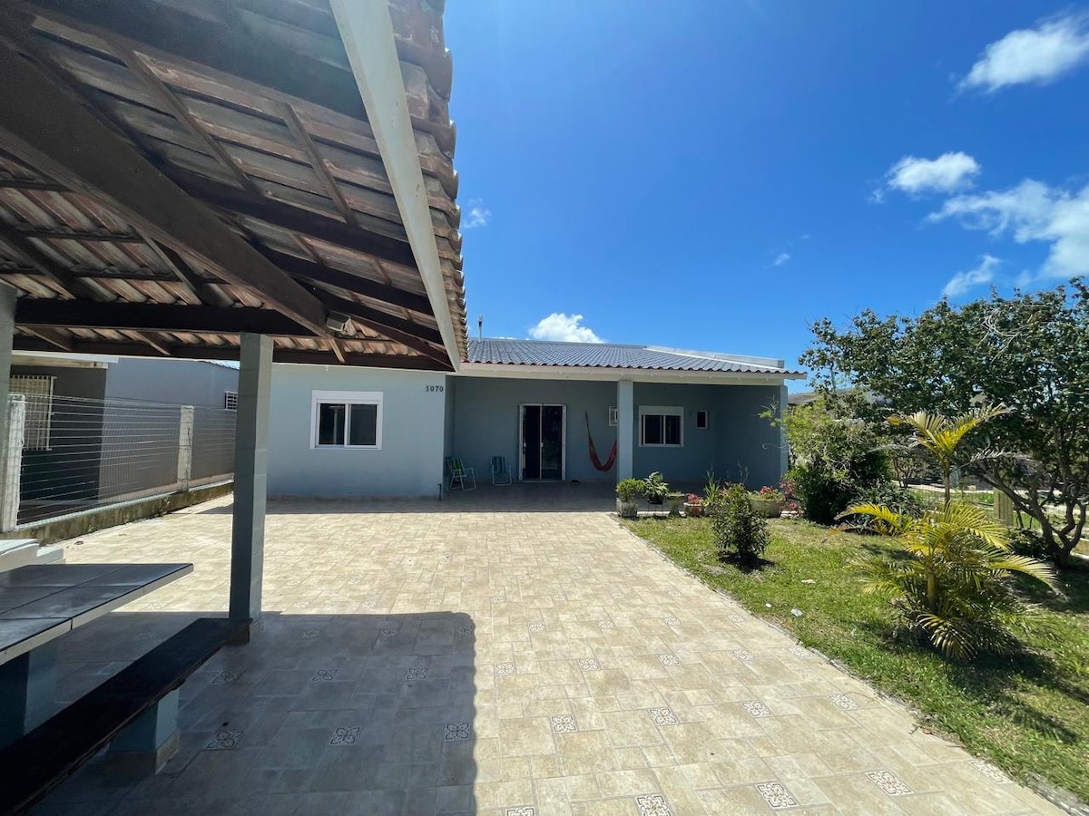 A 2 min.a pé do mar,aceita pets,infra estrut.completa,arejada,local seguro,pátio fechado,4 quartos,sendo 2 suítes,4 banheiros,wi-fi ,2 tvs sem canal aberto,salão de festas,piscina,lareira,garagem para 2 carros.Roupas de cama e mesa,todos os eletros,ventiladores.Espaço churrasqueira amplo e integrado com a piscina.Jardim amplo,câmeras externas.Voltagem 220v toda a casa. Suítes c split 9000 e 12000btus.Fora temporada check in pode ser cedo a critério do hóspede e check out pode ser as 19hs.